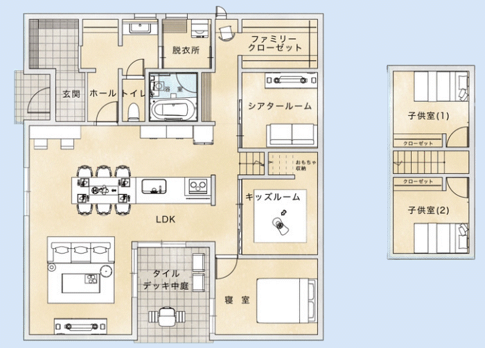開放的なリビング、スキップフロア、シアタールーム等のアイ工務店ならではのアイデア空間。